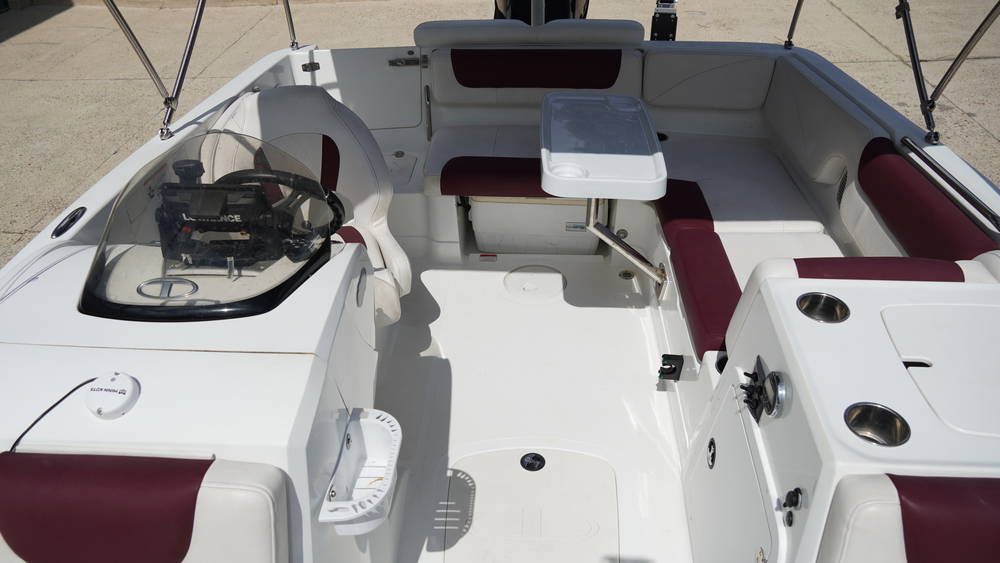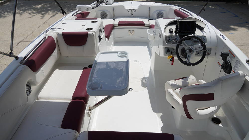 Speaking of the ski tow pylon, the 2150 sports the TAHOE-exclusive POWERGLIDE hull design, which pairs just right with the Mercury outboard for sensational performance for watersports and cruises.