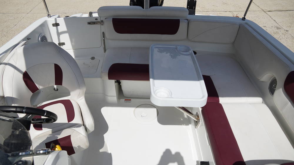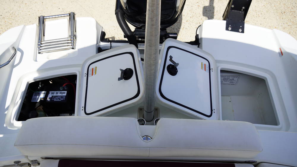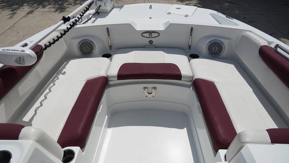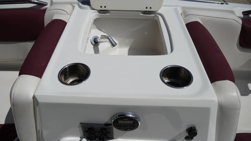 - Aft L-lounge w/molded-in storage, including ski rope holder & removable 36-qt. (34.07 L) cooler