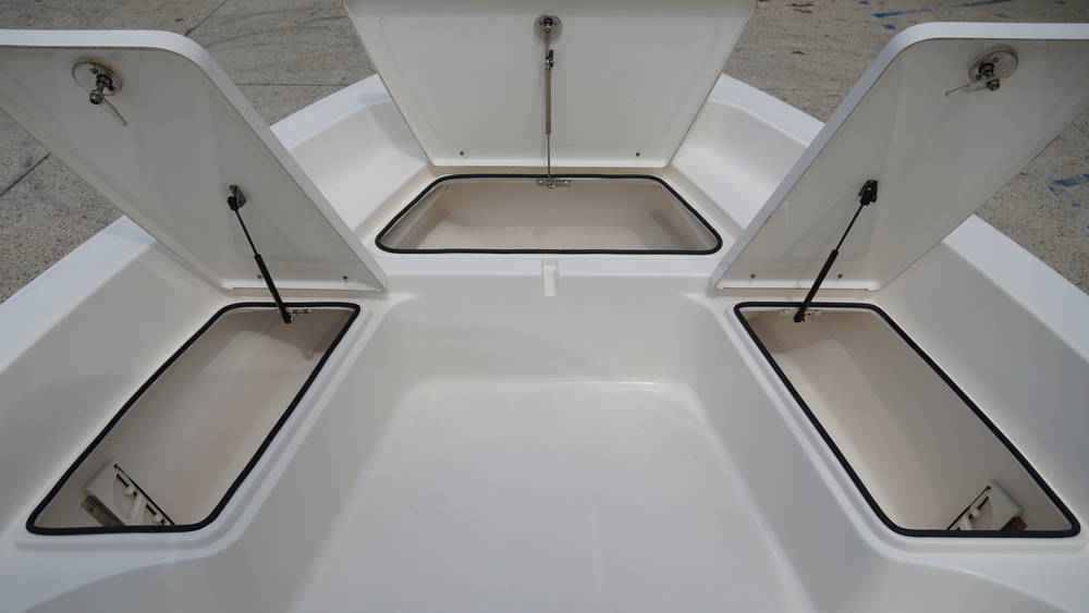Insulated fish box (50 gal)Self-bailing cockpitCleats, Heavy Duty, Pull-Up (5)