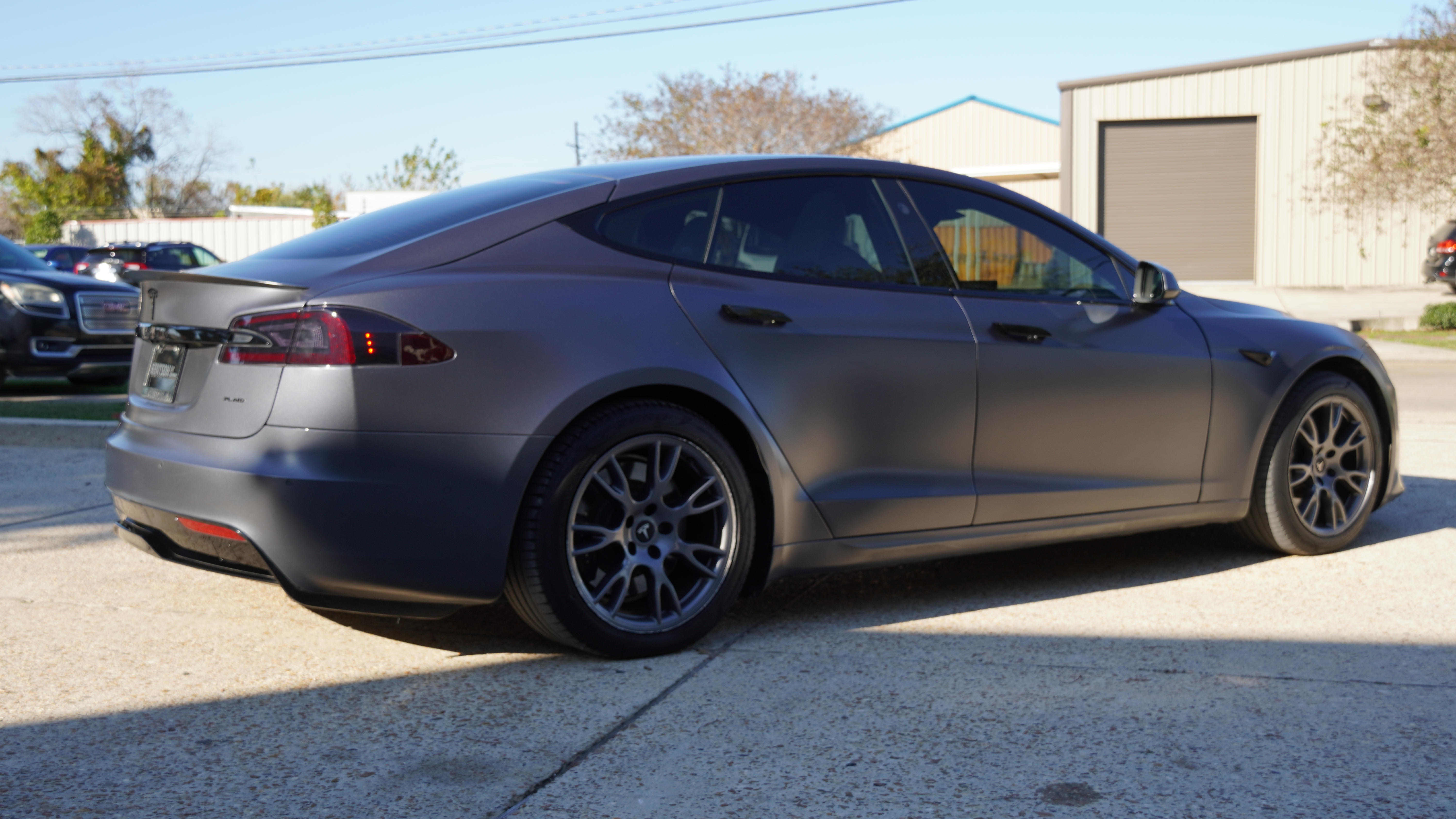 The 2022 Tesla Model S Plaid is a high-performance electric sedan featuring a 1,020 hp tri-motor setup, all-wheel drive, and a 0-60 mph time of 1.99 seconds. It has a top speed of 200 mph, a 368-mile EPA-estimated range, and can achieve a quarter-mile in 9.23 seconds at 155 mph. Key features include a 17-inch infotainment screen, a yoke steering wheel, and a 28 cubic foot cargo capacity.