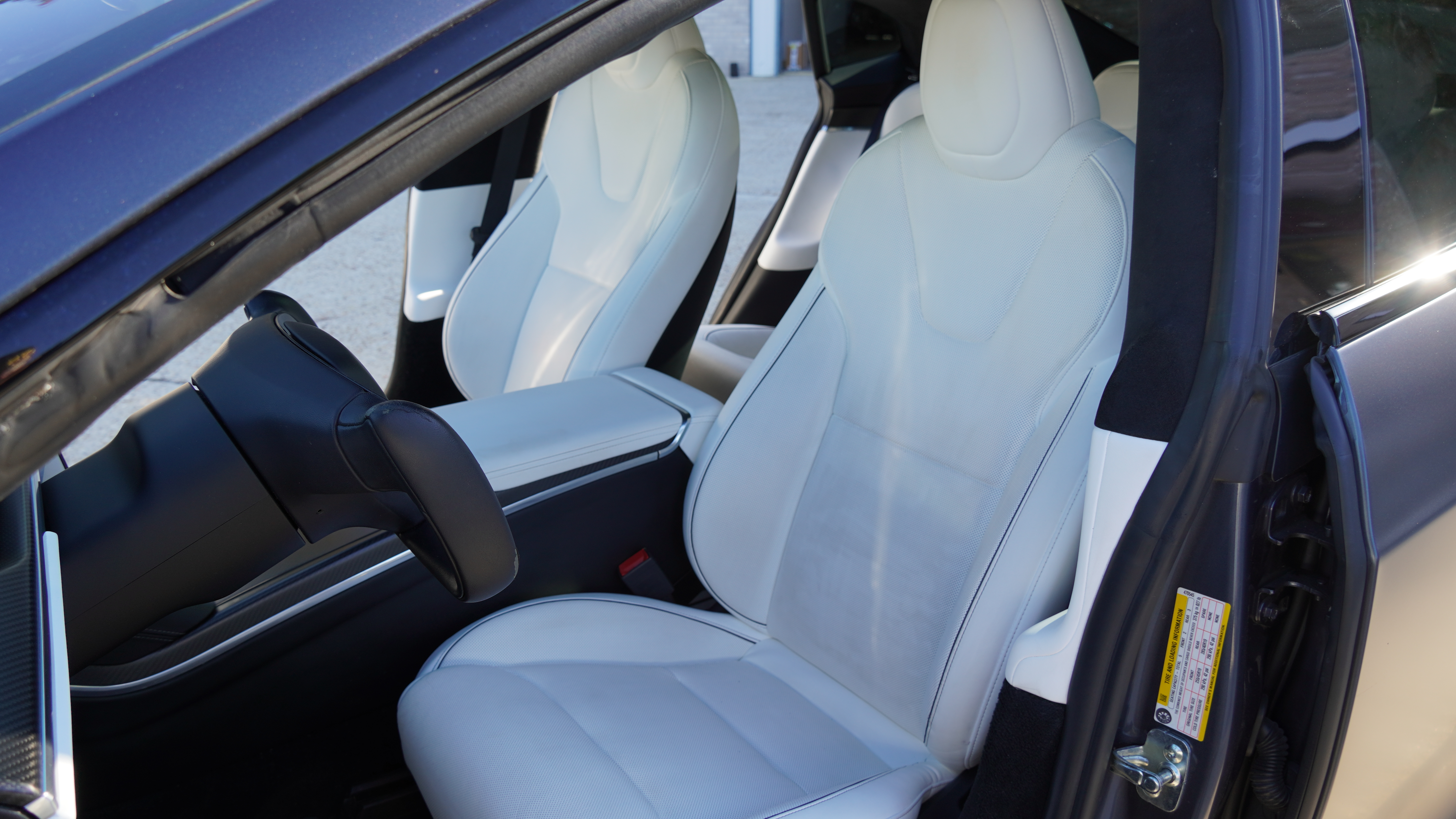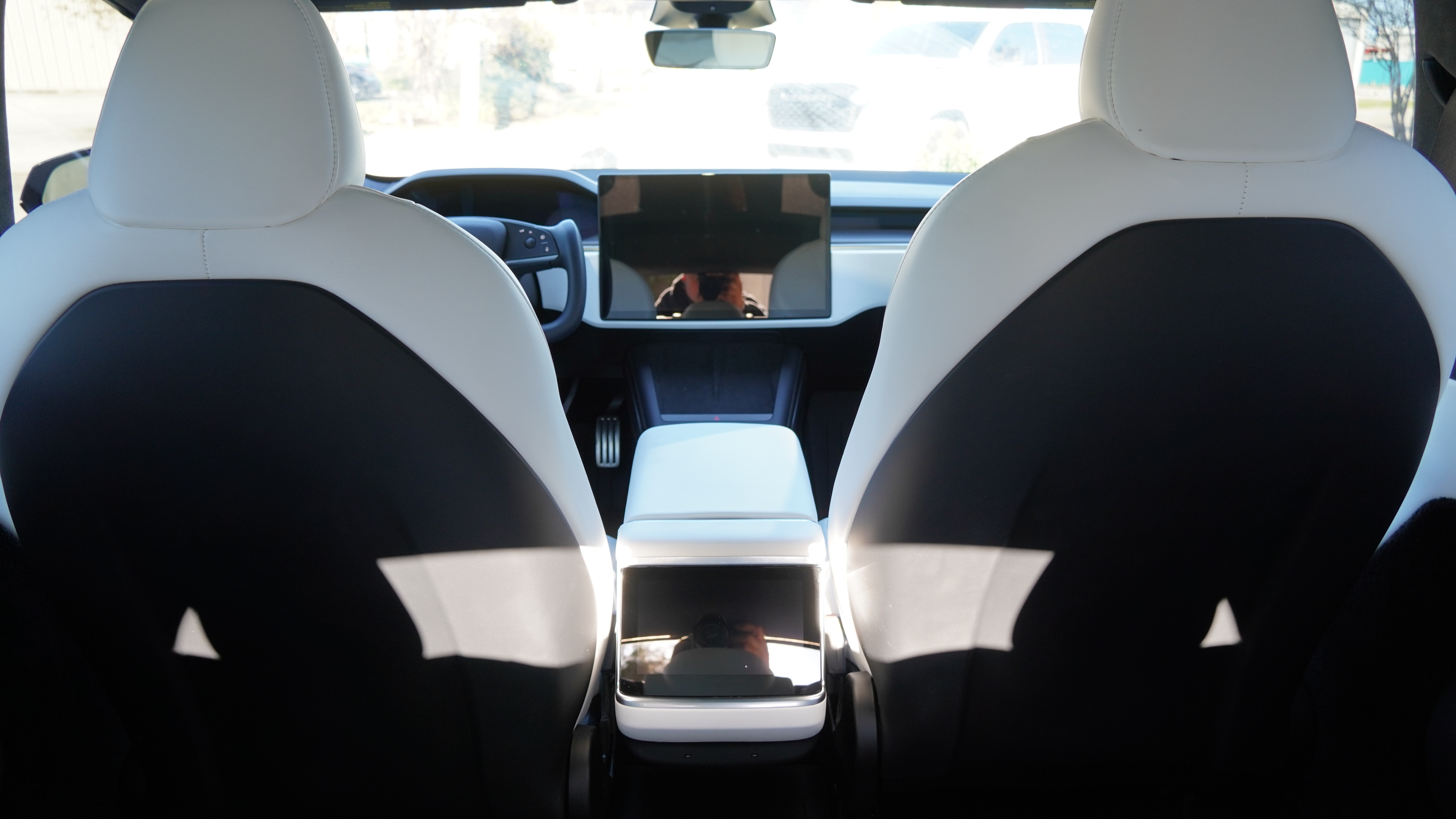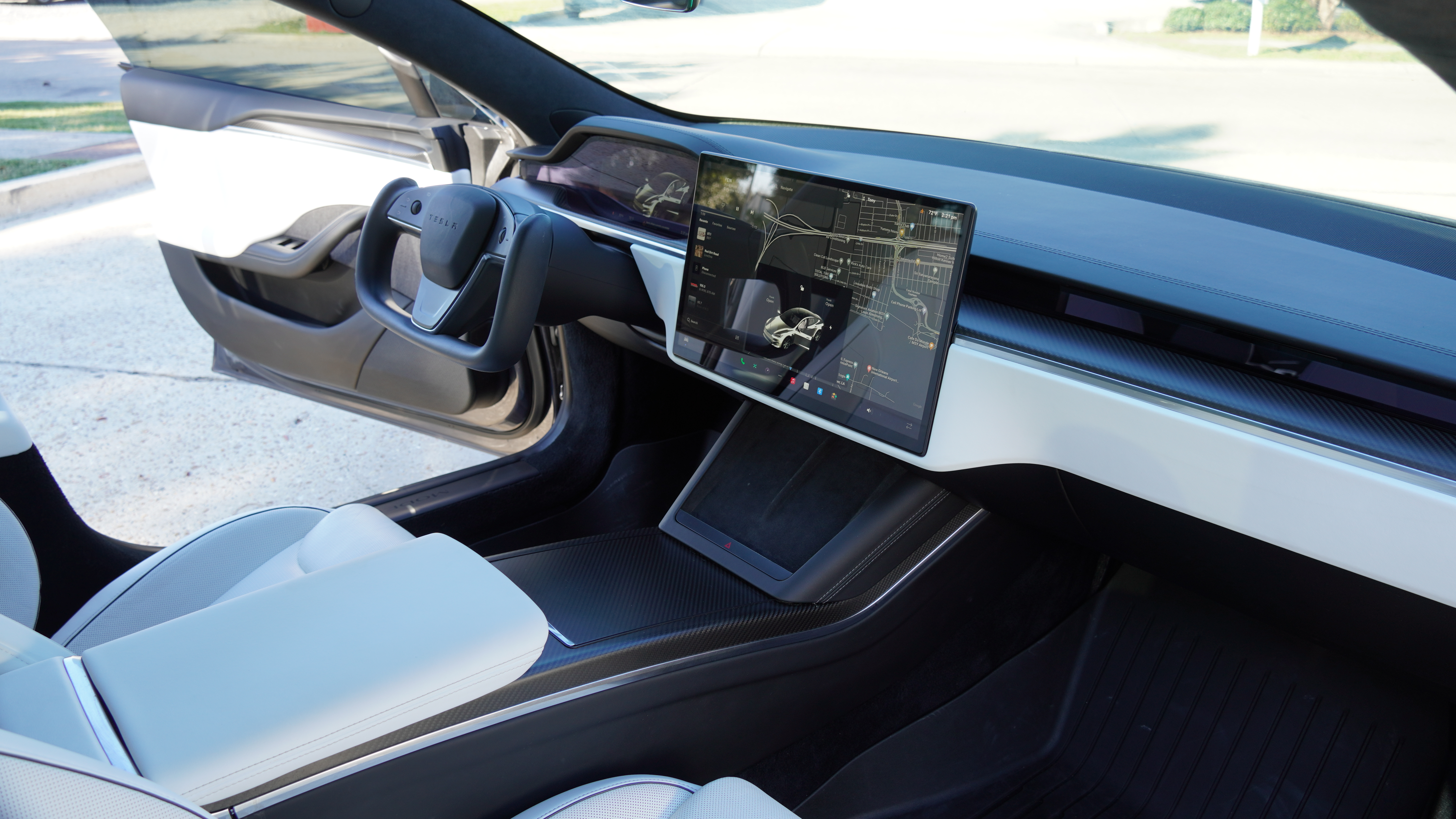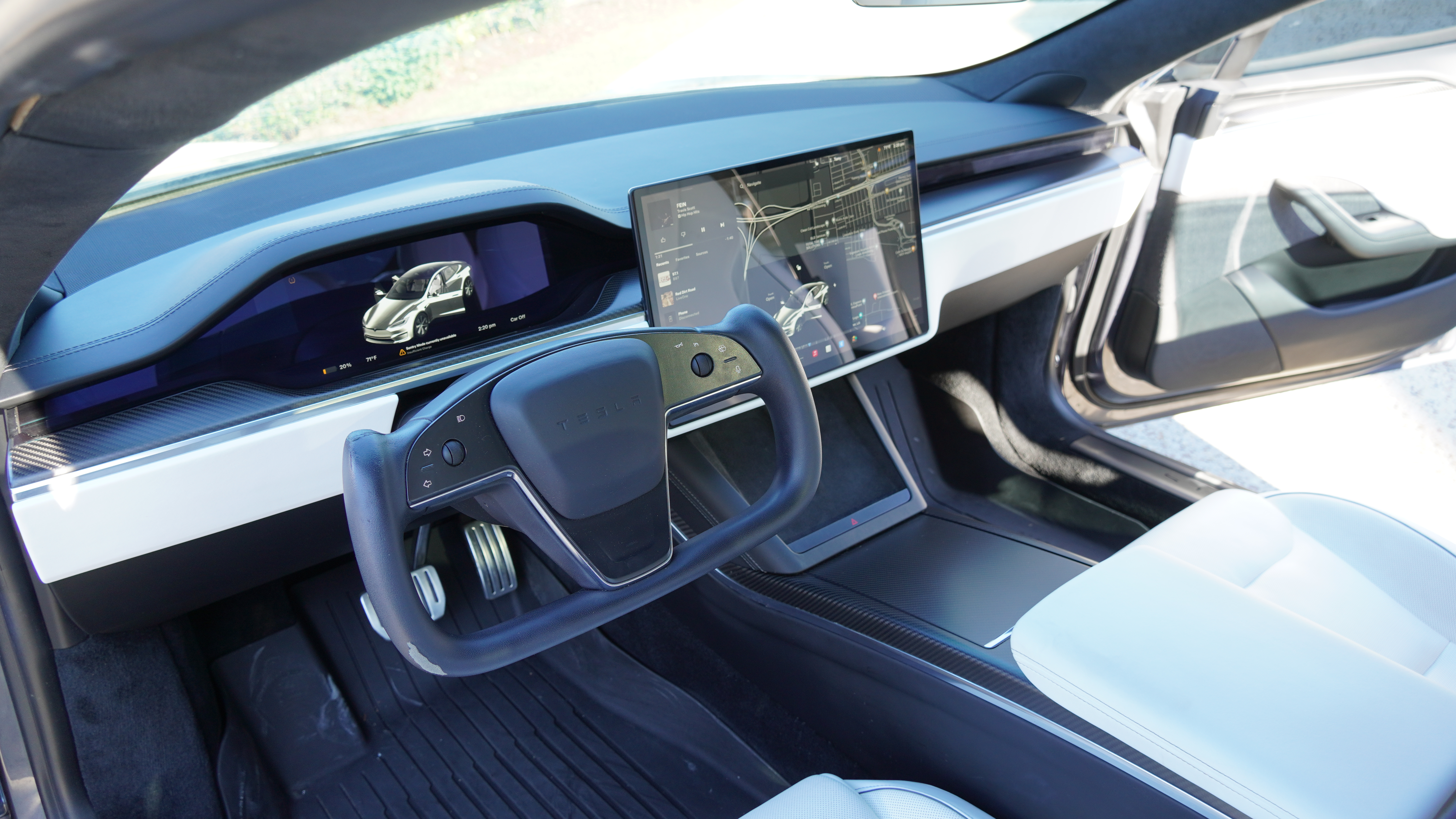 Interior: 17-inch horizontal infotainment screen and yoke steering wheel